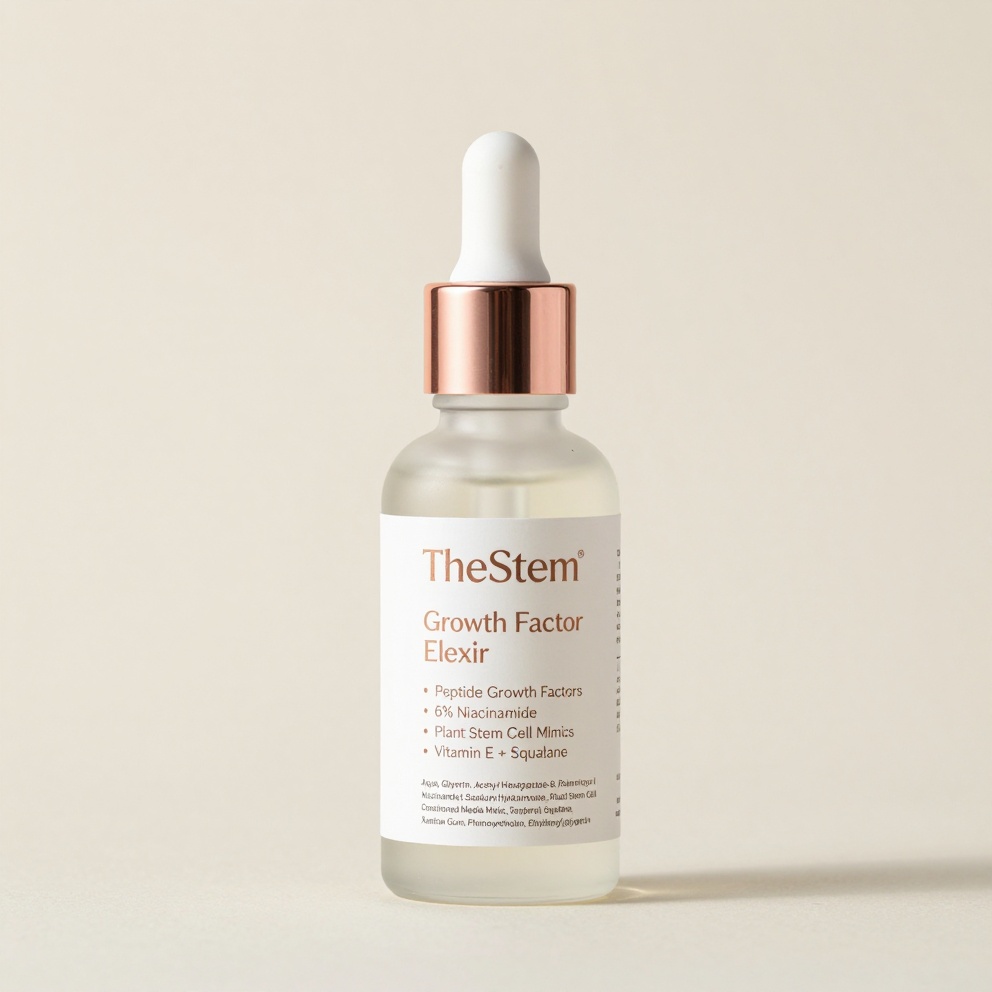 TheStem Growth Factor Elixir mimics advanced stem cell signaling with peptide blends and conditioned media alternatives to target deep regeneration, reduce wrinkles, and enhance skin density. Lightweight yet powerful, it’s designed for visible firmness and radiance in mature or stressed skin.